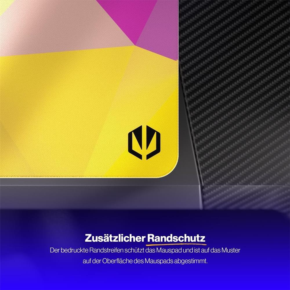 Der Randstreifen sichert die Ränder des Mauspads gut ab und schützt es vor dem Einreißen. Der aufgetragene Druck harmoniert zudem mit dem Muster auf der Oberfläche.