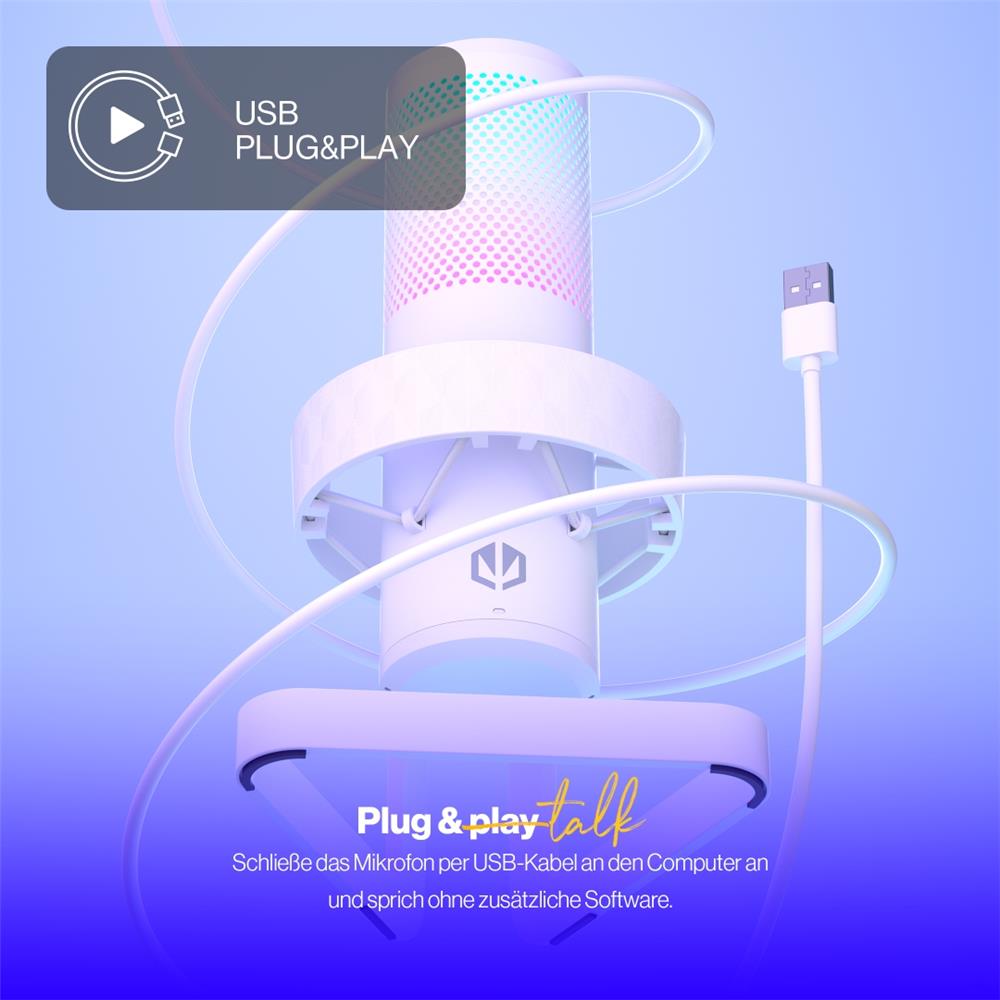 ENDORFY AXIS Streaming Onyx White, weißes Mikrofon, Kopfhöreranschluss, RGB