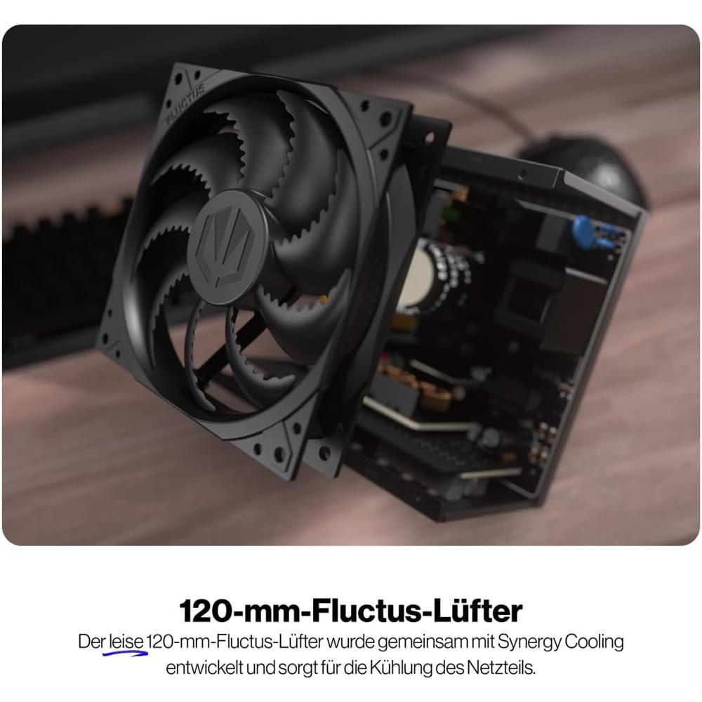 - Leiser 120-mm-Fluctus-Lüfter mit FDB-Lager für langlebigen, nahezu geräuschlosen Betrieb