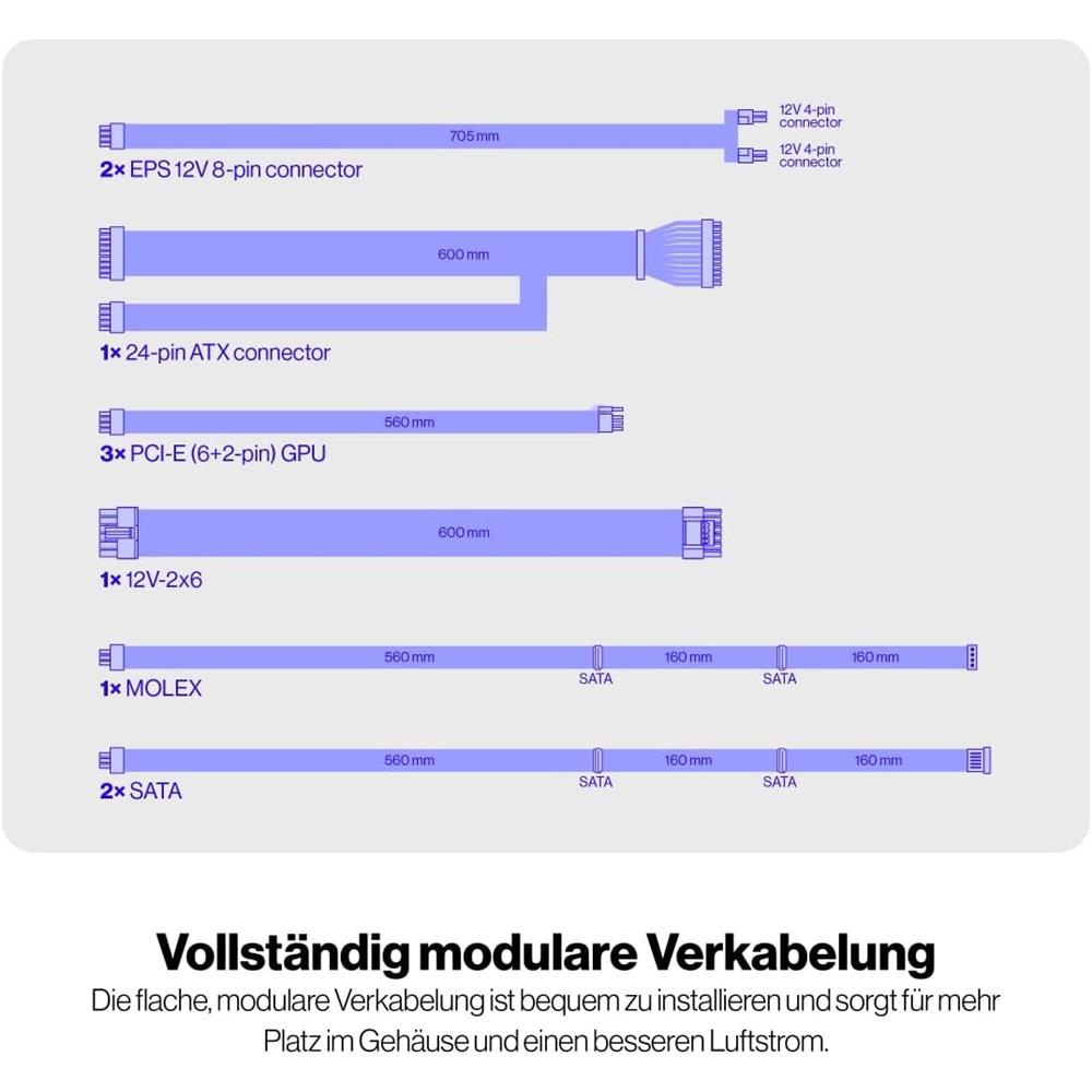 - Inklusive 12V-2x6-Kabel für moderne Grafikkarten der neuesten Generation