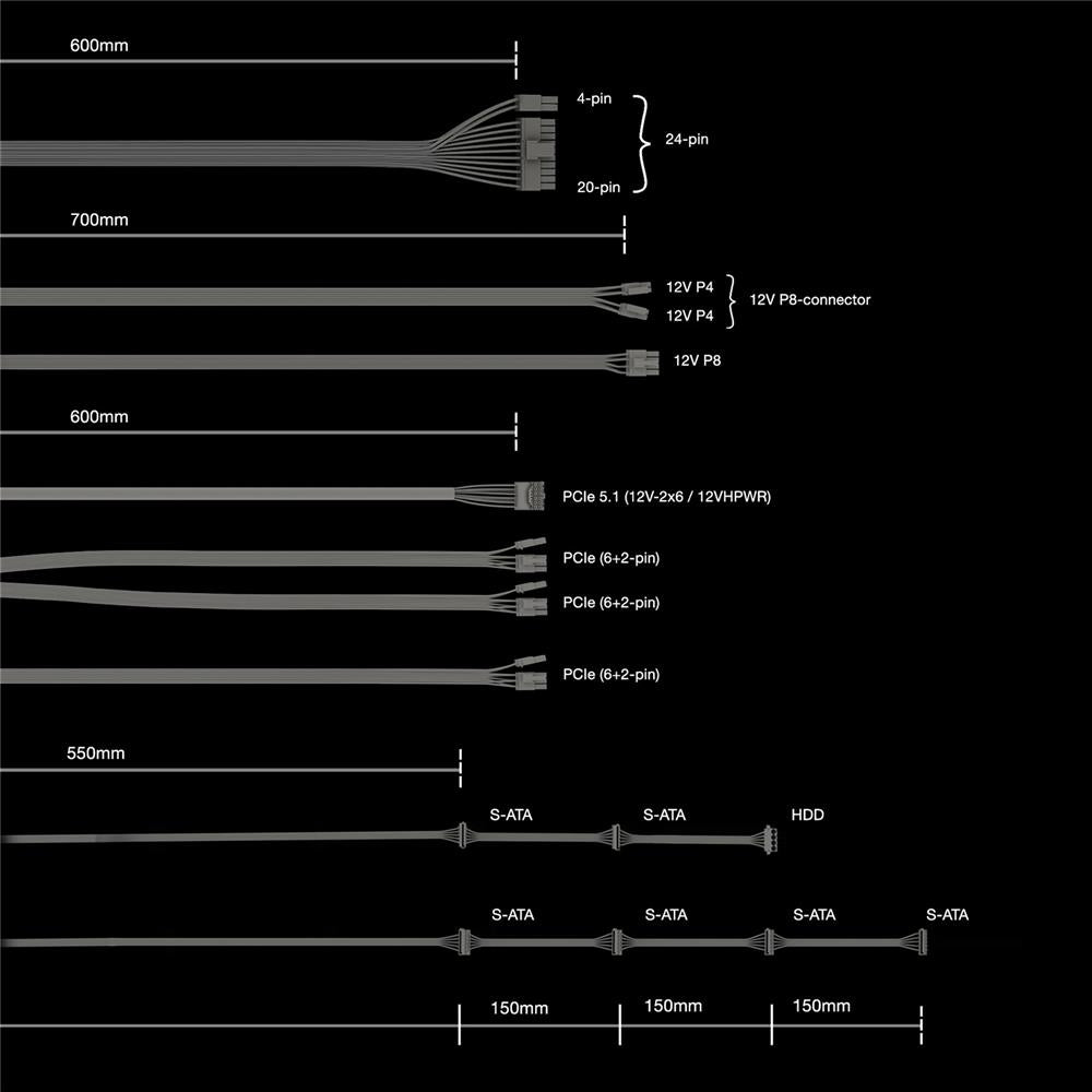 Power Zone 2 750W ist ein ATX 3.1 Netzteil und verfügt sowohl über einen nativen 12V-2x6 Anschlusses für PCIe 5.1 Grafikkarten der nächsten Generation, als auch über 3 PCIe 6+2-Pin Anschlüsse zur Unterstützung von Current-Gen GPUs. Ein 12V-2x6-Anschluss mit 90°-Stecker im Lieferumfang lässt keinen Zweifel daran, dass dieses Netzteil hier ist, um zu bleiben. All das macht Power Zone 2 750W extrem vielseitig und zur perfekten Wahl für leistungsstarke Systeme von heute und morgen.