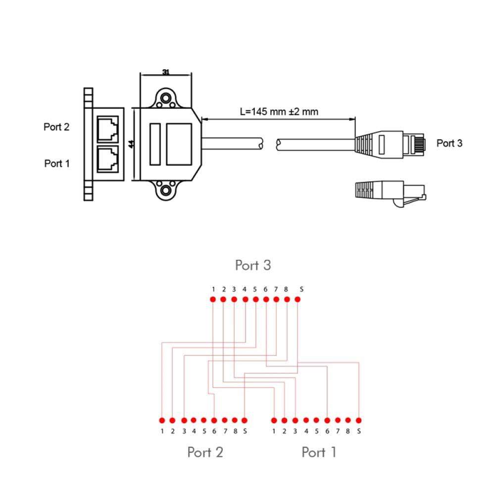 • 1 x RJ45 Eingang auf 2 x RJ45 Ausgang