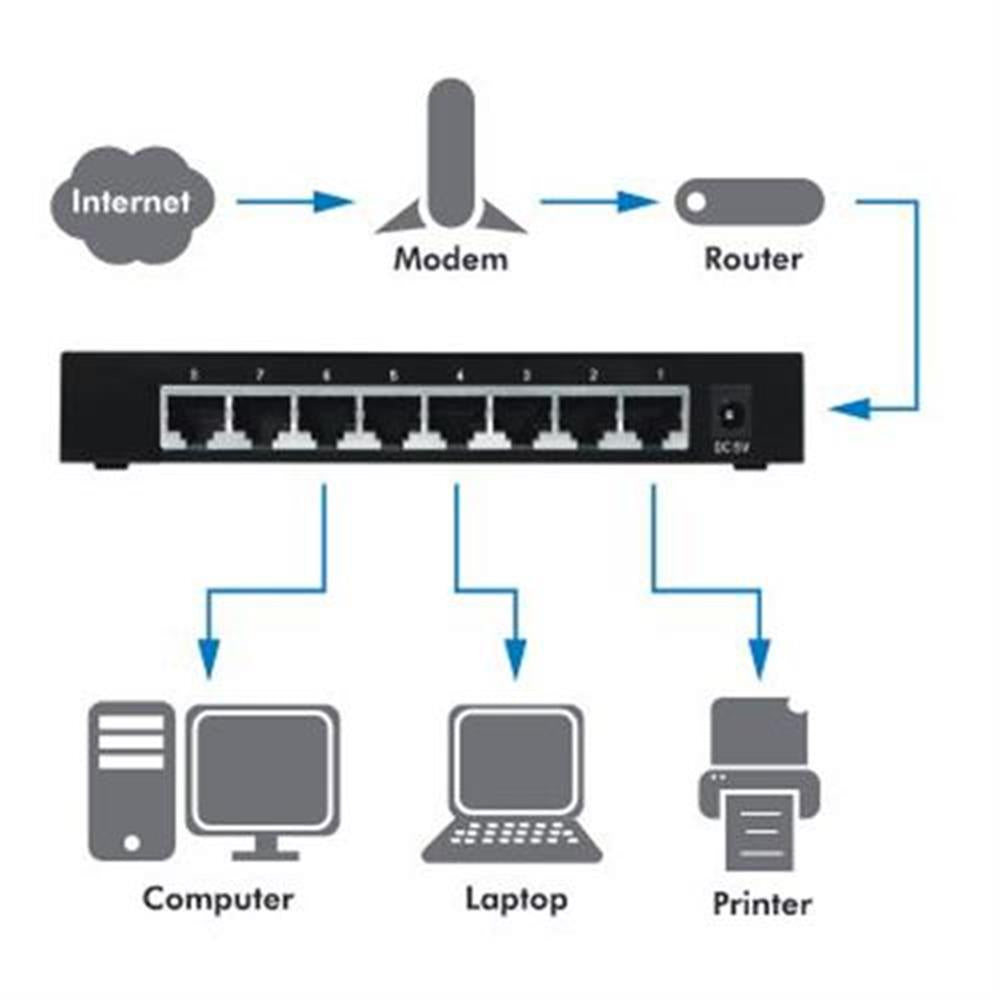 - 1 x 8-Anschluss Gigabit-Ethernet Desktop-Switch