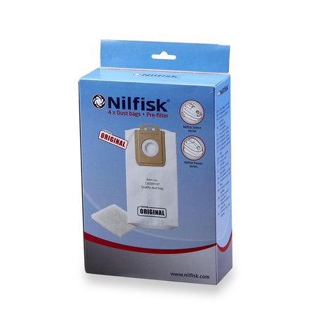 Nilfisk Original 128389187 Staubsaugerbeutel 4 Stück inkl. 1x Vorfilter für Select Power Sauger