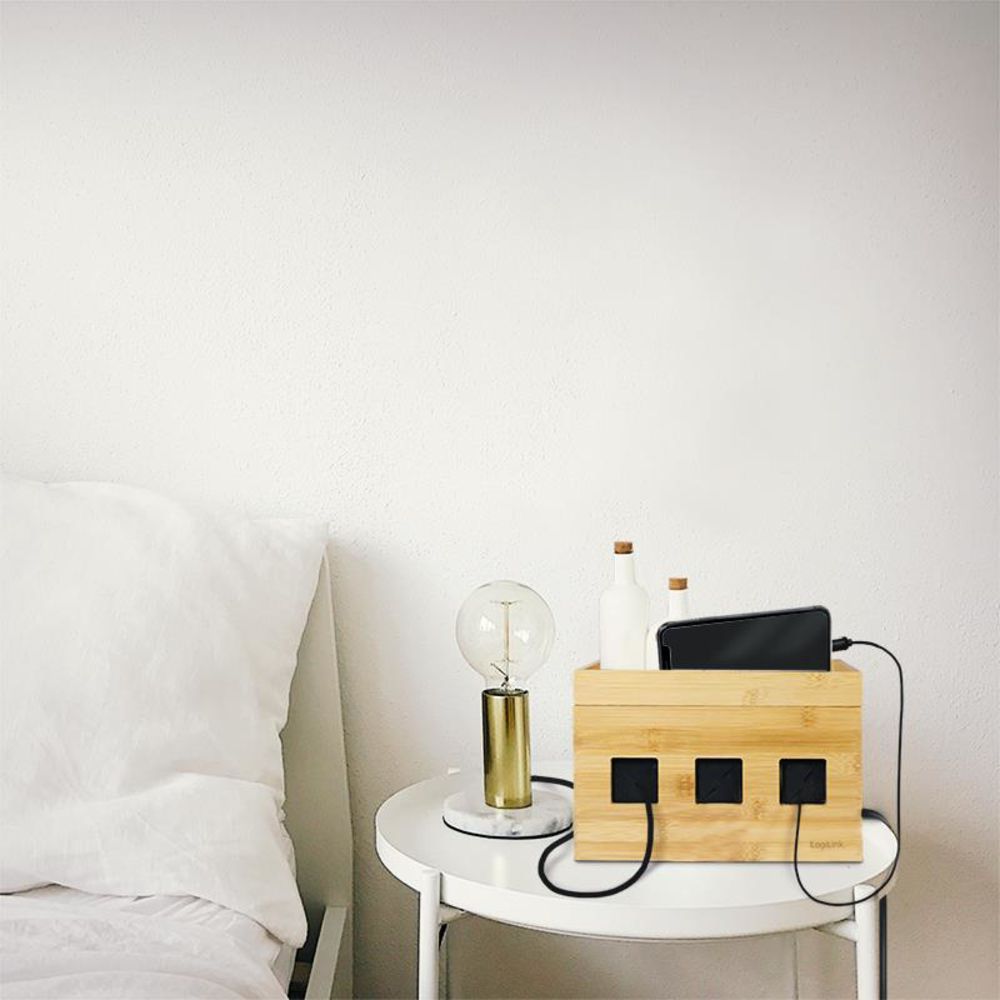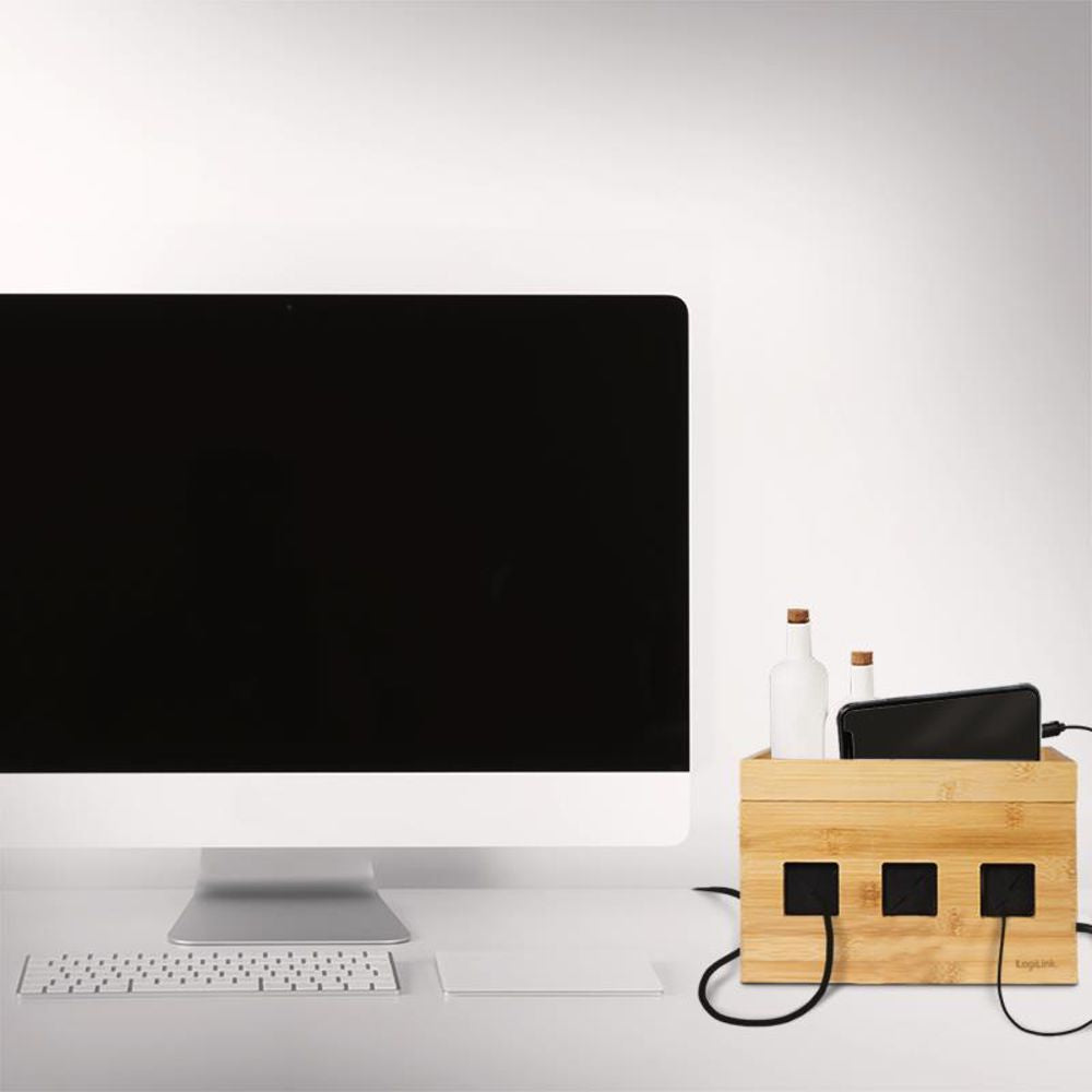 LogiLink Kabelbox 255x140x165 mm Bambus Kabelmanagement Kabelordnung