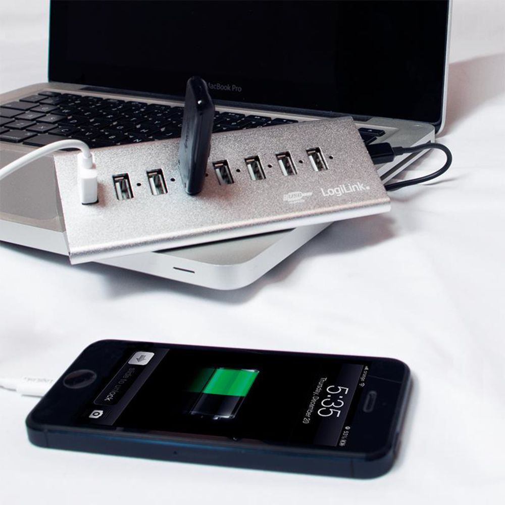 LogiLink USB 2.0 High-Speed-Hub mit 7-Port und 1x Schnell-Ladeport