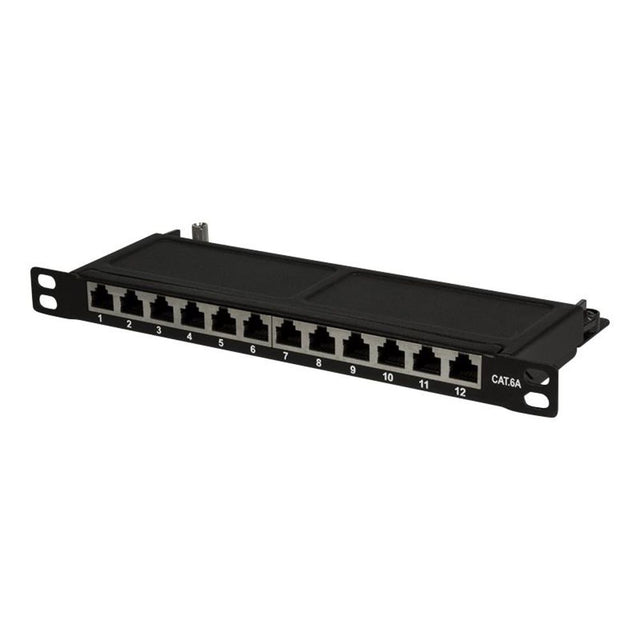 LogiLink 10" Zoll Cat.6A Patchpanel 12-Port schwarz 0,5 HE geschirmt PoE, PoE+ und PoE++