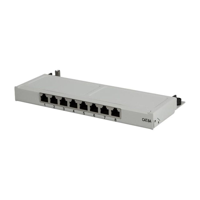- Cat.6A Patchpanel mit 8 Ports, geeignet für Desktop- oder Wandmontage
