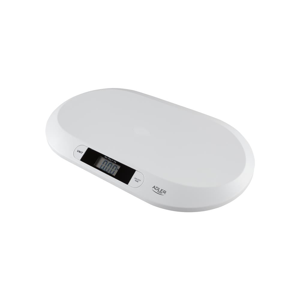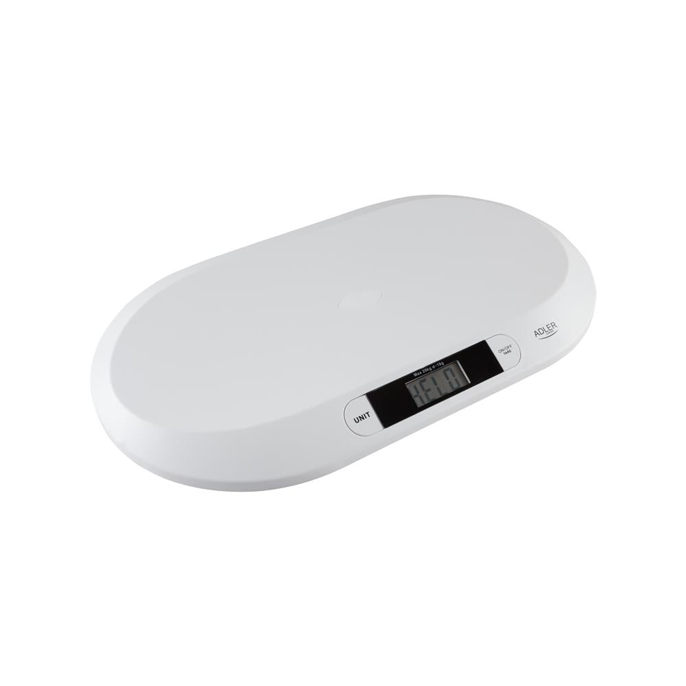 Adler AD 8139 Babywaage bis 20kg in Weiß, mit LCD-Display, Haltefunktion und Tara-Funktion