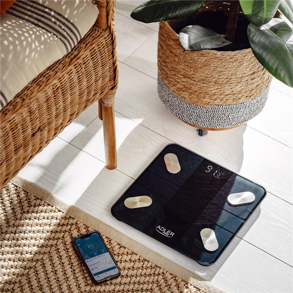 Adler AD 8186 Tuya Smart Badezimmerwaage mit App Bluetooth Personenwaage schwarz