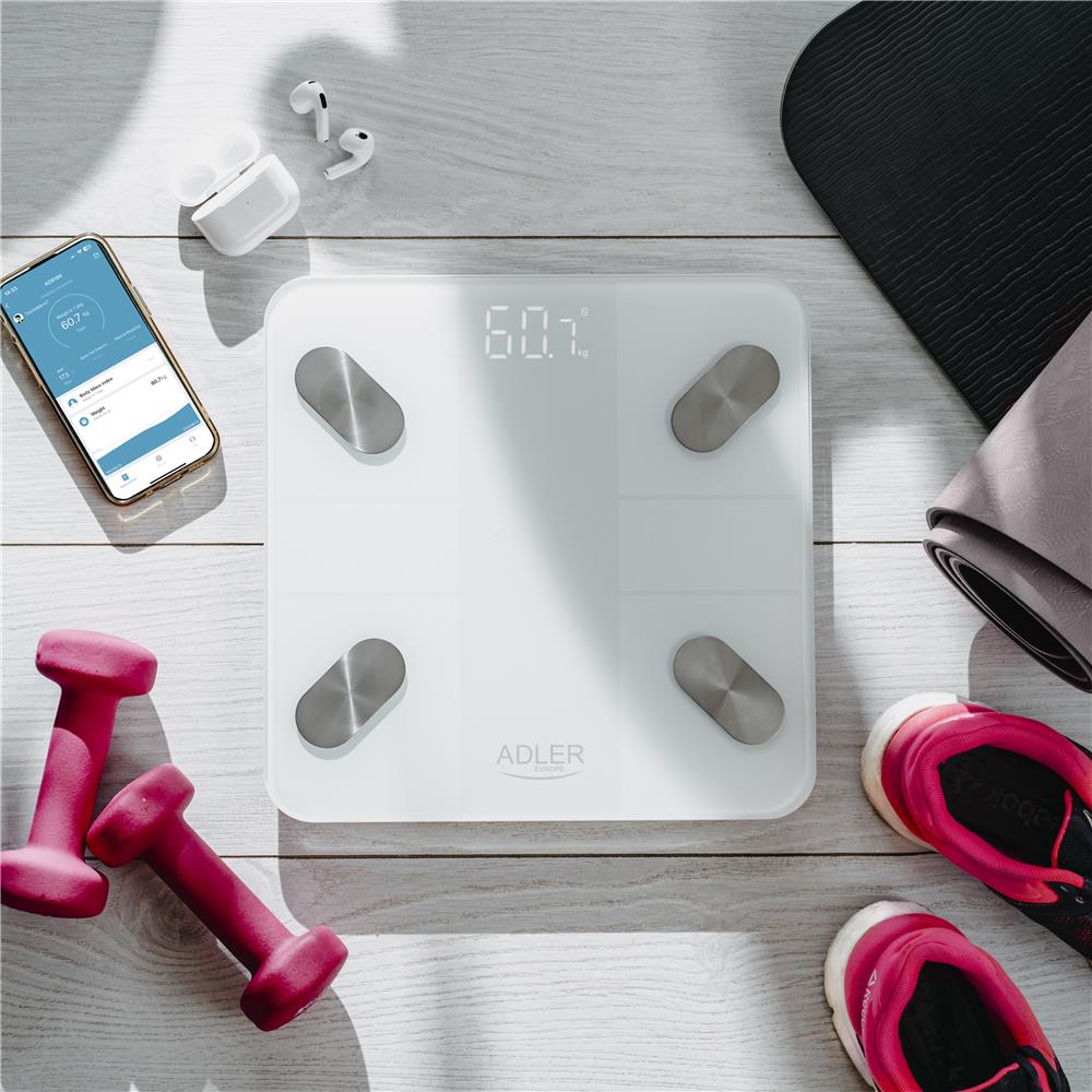 Adler AD 8186 Tuya Smart Badezimmerwaage mit App Bluetooth Personenwaage weiß