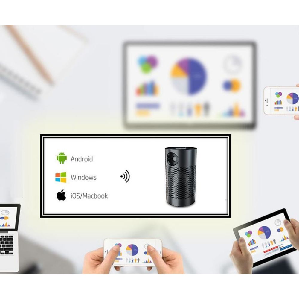 Bei dem HP Projektor MP250 in elegantem anthrazit handelt es sich um einen mobilen und äußerst vielseitigen Beamer. Mit seinen schlanken 424 Gramm und den kompakten Abmessungen passt er in jede Handtasche und ist überall einsetzbar. Egal, ob daheim oder im Büro: Dank des Objektivs mit einem Projektionsverhältnis von 1,2:1 erreicht er eine Bilddiagonale von 80 Zoll aus nur 210 cm Entfernung und ist für jeden Raum geeignet. Der 3D-taugliche Projektor mit intuitivem App-Center als direkten Zugang zu Ihren Medien, ermöglicht ein drahtloses Streamen von iOS- oder Android-Geräten. So greifen Sie ohne lästigen Kabelsalat direkt auf Filme, Serien, Musik oder Spiele zu und projizieren sie nahtlos auf die Leinwand. Das intelligente Autofokus-System in Kombination mit der 4-Punkt-2-Achsen-Keystone-Korrektur sorgt stets für ein scharfes Bild ohne Verzerrungen.