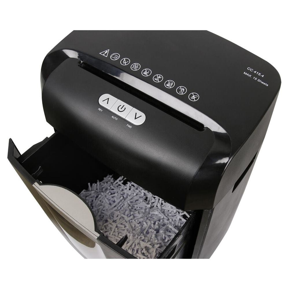 Olympia Aktenvernichter CC 415.4 - 30 Minuten lange Arbeitszeit, Sicherheitsstufe P4, Partikelschnitt, 15 Blatt, 16 Liter, Schwarz