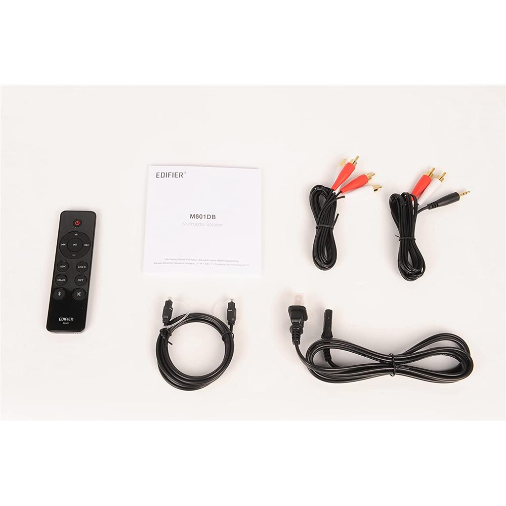 Edifier M601DB - 2.1 Home-Entertainment-System (110 Watt) mit Bluetooth V5.1 (aptX), 21cm (8 Zoll) kabellosem Subwoofer, Digital- und Analogeingängen und Infrarot-Fernbedienung
