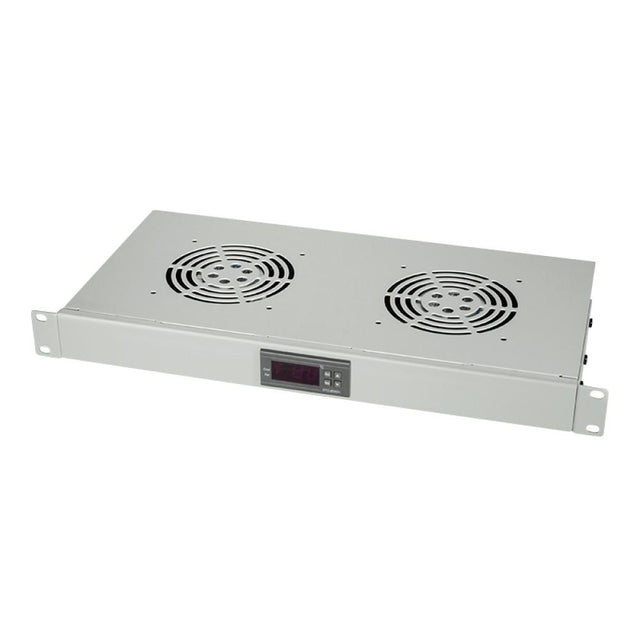 Lüftereinheit zur aktiven Belüftung von Stand- und Wandschränken zum einfachen Einbau in die vordere Befestigungsebene. Passend für alle Racks mit einer 482,6 mm (19")-Ebene. Mit Thermostat und 220 V Anschluss.