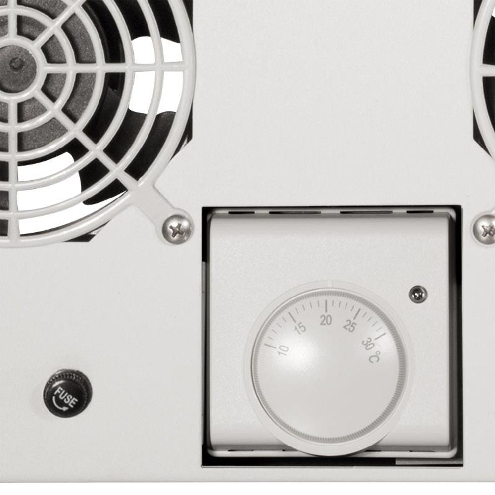 Lüftereinheit zur aktiven Belüftung der Netzwerk- und Server Racks. Mit Thermostat und 220 V Anschluss. Geeignet zum Einbau in alle Canovate Standschränke.