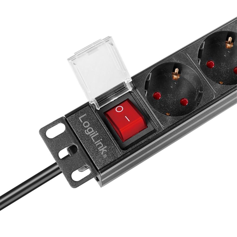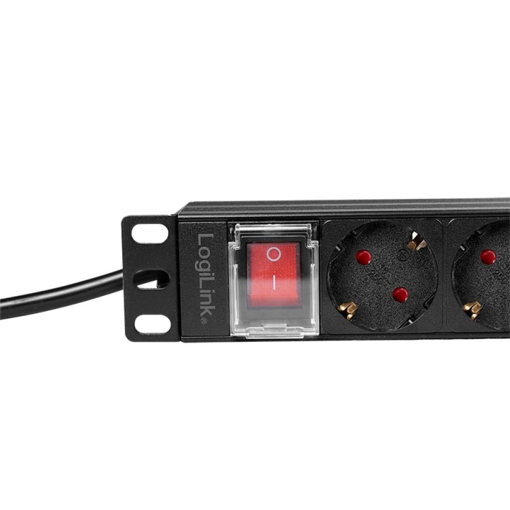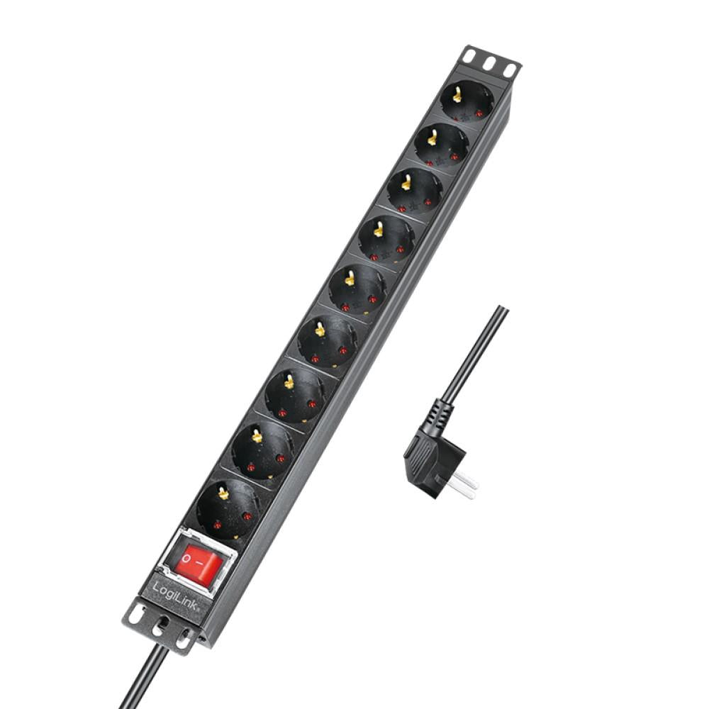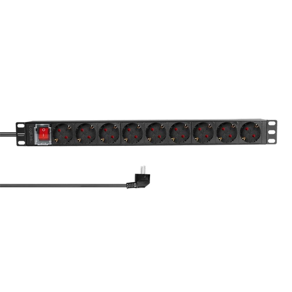 LogiLink 19" Zoll Steckdosenleiste 9-fach CEE7/3 Schutzkontakt Schalter rackeinbaufähig