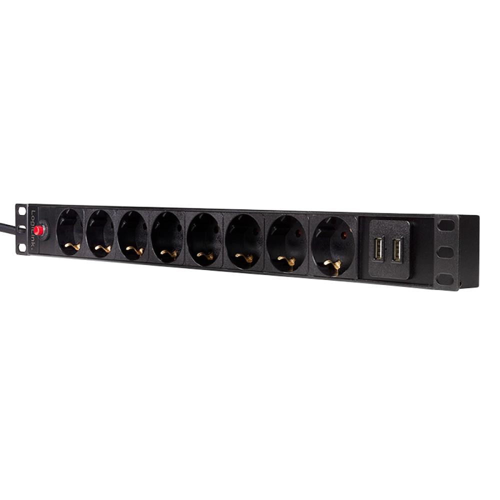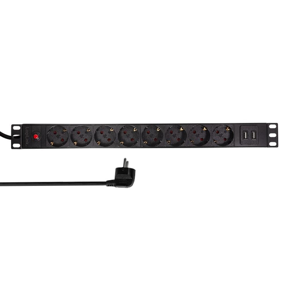 LogiLink Professional 19" PDU Steckdosenleiste 8 x CEE7/3 Dose + 2 x USB