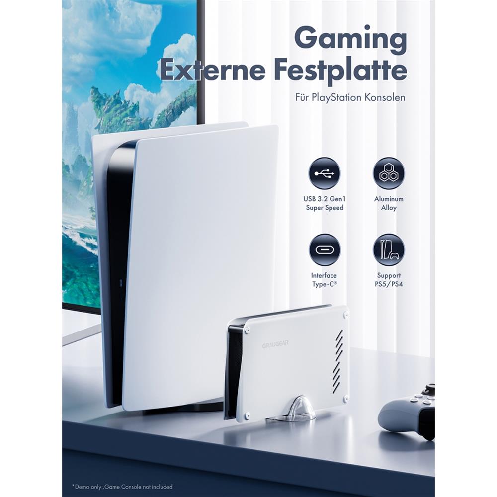 GRAUGEAR 4TB Externe Gaming-Festplatte, Aluminiumgehäuse, vorformatiert für PlayStation Konsole