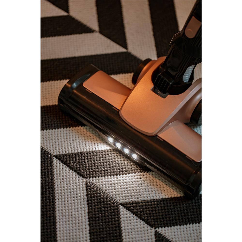 Dank der im Lieferumfang des Geräts enthaltenen Wandhalterung brauchen Sie sich keine Sorgen mehr über kratzende Fußböden oder mangelnden Platz zum Aufbewahren des Staubsaugers zu machen! Die Installation der Wandhalterung wird Ihnen dank der eingebauten Wasserwaage wesentlich erleichtert. Das Gerät ist auch mit einer TURBO-Funktion ausgestattet, die Ihnen helfen kann, den schwer zu reinigenden Staub von Teppichen und Polstern zu entfernen. Dank der eingebauten Leuchte können Sie selbst kleinste Schmutzteile finden. Und Sie können bis zu 40 Minuten reinigen, wodurch Sie die ganze Wohnung reinigen können.