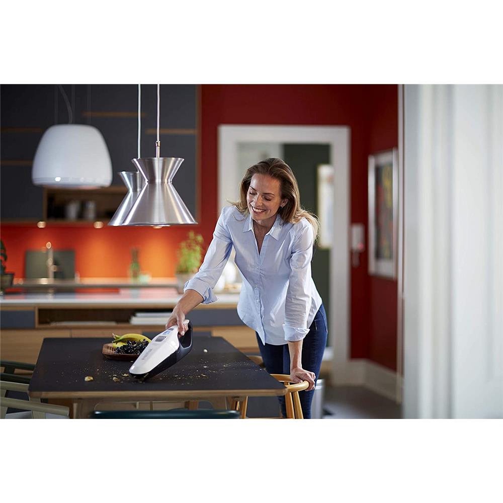 Ein Staubsauger, der für optimale Reinigungsfreiheit sorgt. Mit dem Nilfisk Easy bist du nicht länger durch die begrenzten Bereiche eingeschränkt, die ein herkömmlicher Staubsauger erreichen kann - mit dem Nilfisk Easy ist alles erreichbar. Der Easy ist ein kabelloser Staubsauger mit einer Betriebszeit von bis zu 50 Minuten. Er lässt sich auch in engen Räumen gut manövrieren und verfügt über LED-Leuchten, die das Sehen unter Gegenständen erleichtern. Es handelt sich jedoch nicht nur um einen Staubsauger, sondern um zwei. Mit einem einfachen Knopfdruck wird der integrierte Handsauger Nilfisk Quick ausgelöst. Durch die Integration in den Handgriff kannst du nun alle Bereiche erreichen, die bisher für einen herkömmlichen Staubsauger unzugänglich waren.