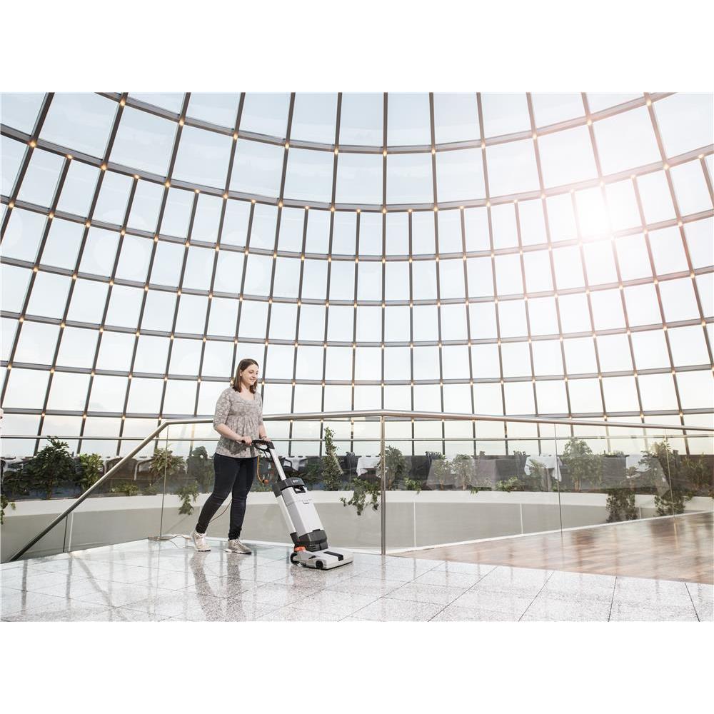Ideal ist die Scheuersaugmaschine für Schulen, Büros, Hotels, Cafés oder großzügige Wohnungen. Ist der Frischwassertank leer, wird dies durch eine rote LED-Anzeige signalisiert. Hinzu kommen der ergonomische Griff für Ein- oder Zweihandbedienung und der handliche Transport bei nur 12Kg Gewicht.