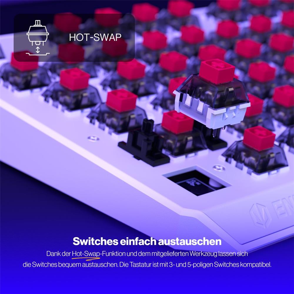 ENDORFY EY5A120 - Tastatur (Eng Layout, QWERTY) Thock Wireless OWH Kailh RD, Kabellos, Beleuchtet, Weiß