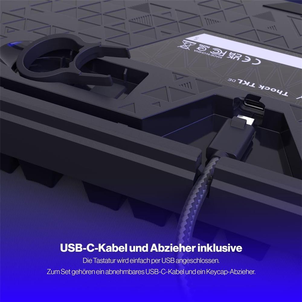 - Inklusive USB-C-Kabel und Keycap-Abzieher für einfachen Anschluss und Wartung.