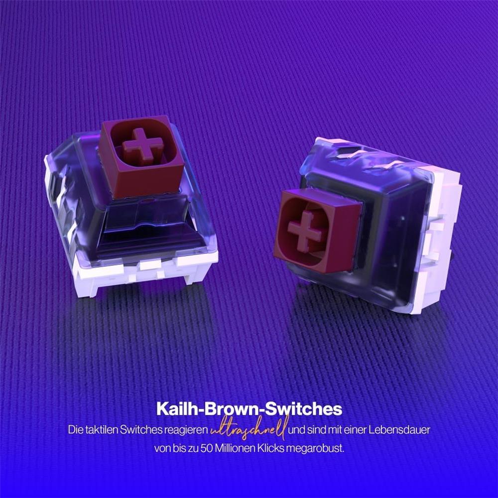 - Double-Shot-Keycaps aus PBT für hohe Haltbarkeit.