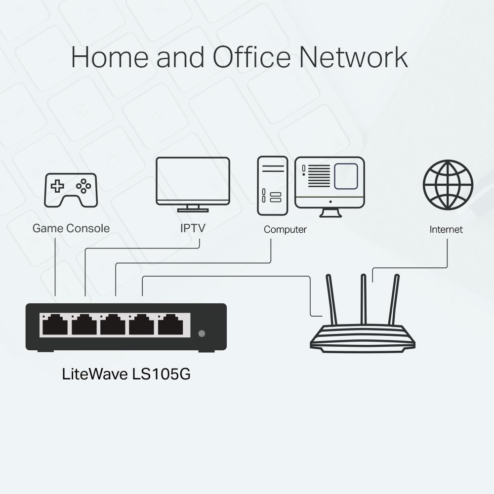Der LS105G ist kompatibel mit fast allen Netzwerkgeräten, z.B. Computer, Drucker, Webcams und IPTVs. Der Switch wird in einem breiten Spektrum verwendet und ist die umweltfreundliche Lösung für Ihr Heim- oder Geschäftsnetz.