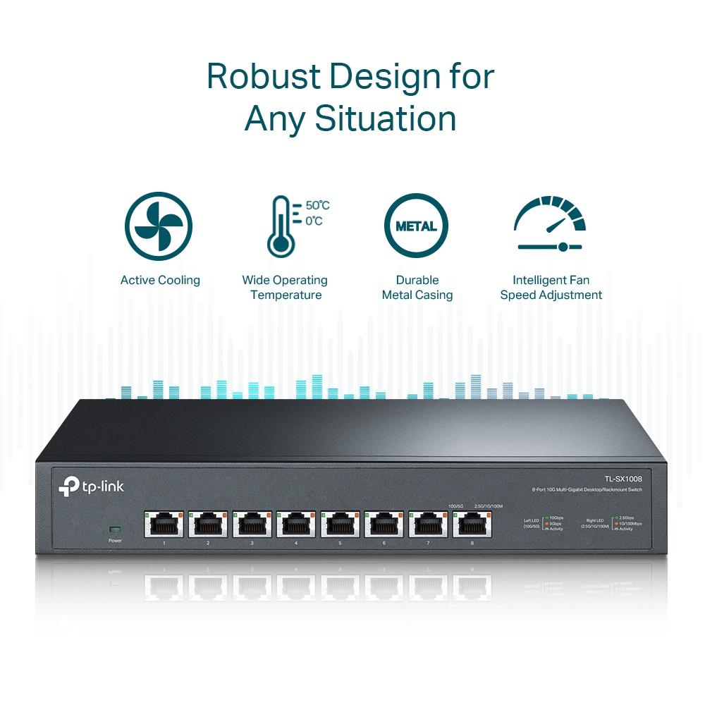 TP-Link TL-SX1008 8-Port 10G Multi-Gigabit Switch – Desktop/Rackmount, 160 Gbps, leiser Lüfter