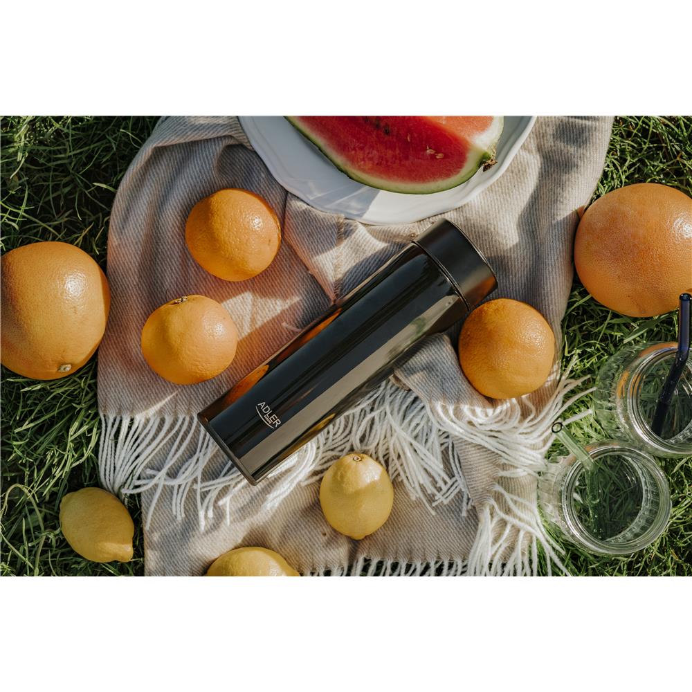 Adler Thermosflasche, 473ml, Schwarz, Trinkflasche mit LED-Temperaturanzeige