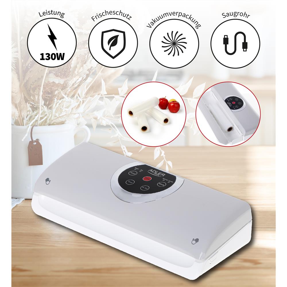 Adler AD 4503 Vakuumierer weiß grau Vakuumiergerät Folienrolle Lebensmittel vakuumieren