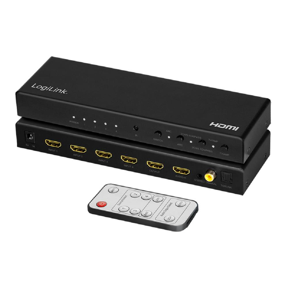 LogiLink HDMI-Switch 4x1-Port 4K/60 Hz HDCP HDR ARC Audio-Extract RC