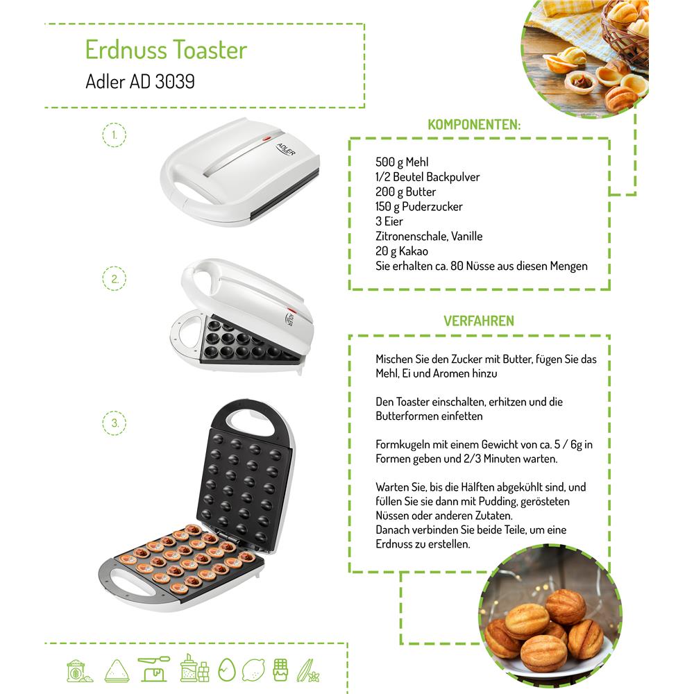 Adler AD 3039 Keks-Maker-Waffeleisen XL für 24 Stück in Erdnussform Oreschki Zaubernüsse