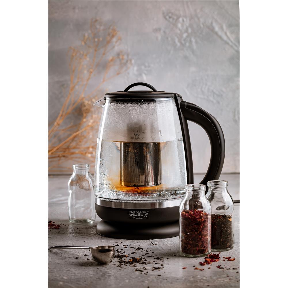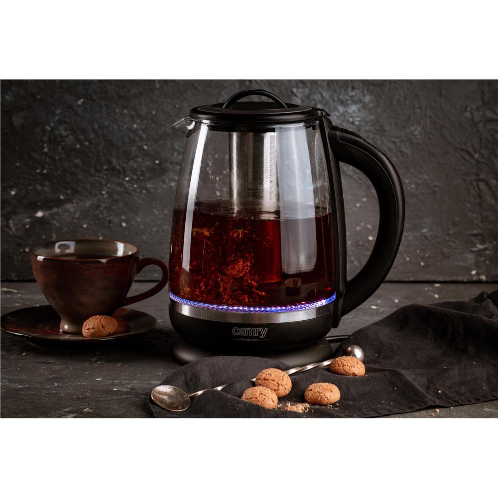 Camry CR 1290 Wasserkocher Glas 2 L beleuchtet 2200W Temperaturregler Teesieb