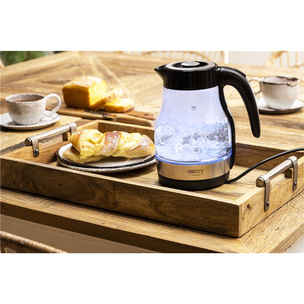 Camry CR 1300 Wasserkocher 1,7 Liter Glaskessel mit LED-Beleuchtung Edelstahl