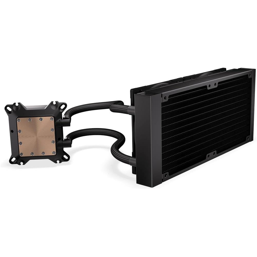Sein Herzstück ist eine geräuscharme Keramiklagerpumpe mit PWM-Steuerung und ein 240 mm Radiator mit zwei vorinstallierten Fluctus 120 PWM ARGB Kühllüftern. Dieses kompakte Kit ist mit vielen AMD- und Intel-Sockeln kompatibel. Es passt auch in die meisten Standard-Gehäuse, sodass du dir keine Sorgen machen musst, dass deine Komponenten wie in einer Dose Sardinen eingequetscht werden.