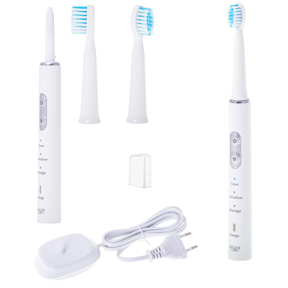 Adler AD 2175 Schallzahnbürste 30.000vpm elektrische Zahnbürste Akku weiß Ladstation austauschbare Köpfe