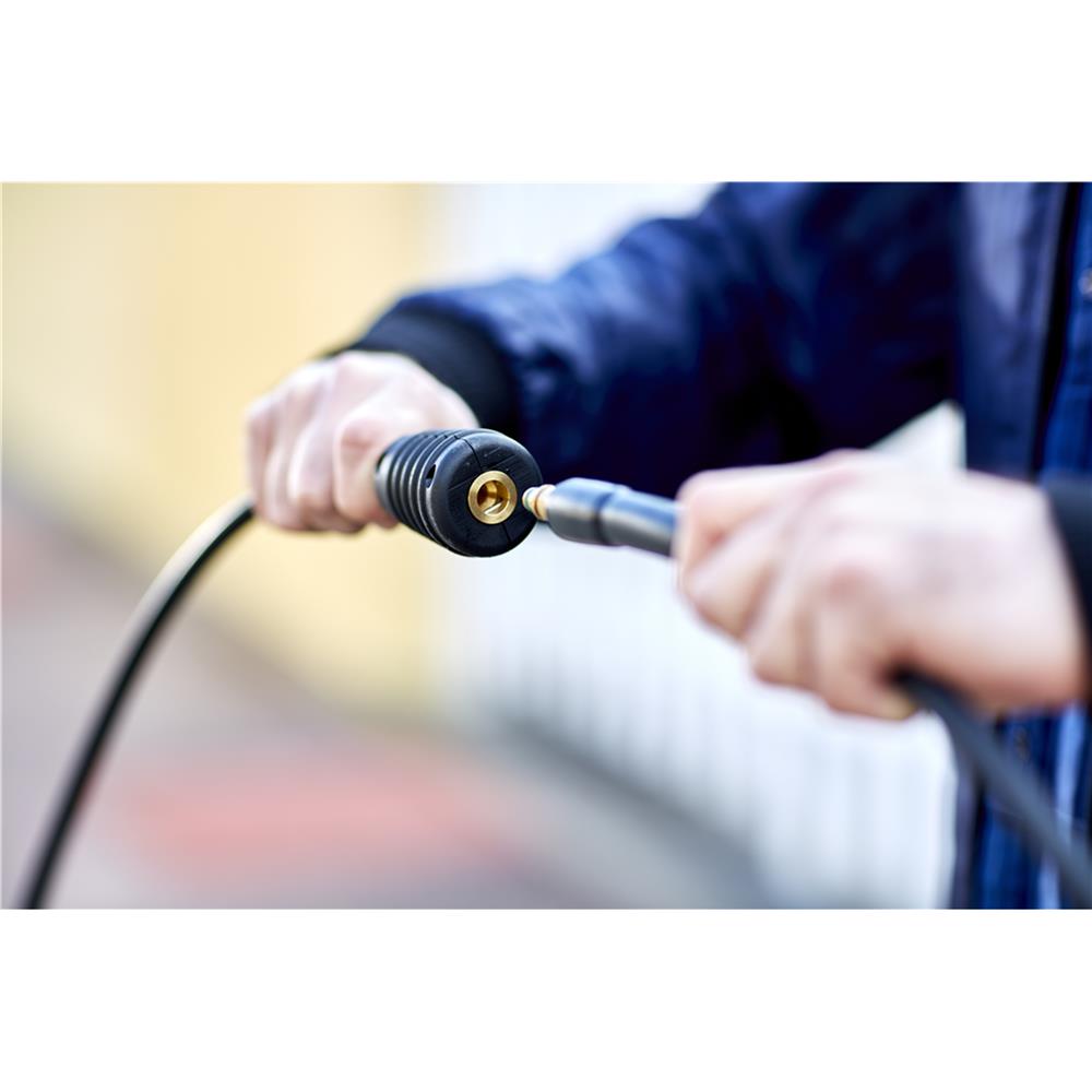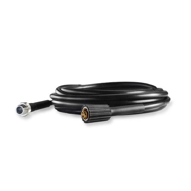 Mit dem Verlängerungs-Hochdruckschlauch, der über eine Gewindekupplung angeschlossen wird, können Sie im wahrsten Sinne des Wortes in die Vollen gehen. Mit einer zusätzlichen Reichweite von 7 Metern können Sie mit diesem Zubehörteil Ihren Reinigungsbereich mehr als verdoppeln. Es eignet sich perfekt für die Reinigung von Oberflächen, die weiter von Ihrer Wasser- oder Stromquelle entfernt sind. Schnellverschluss/Schwenkkupplung.