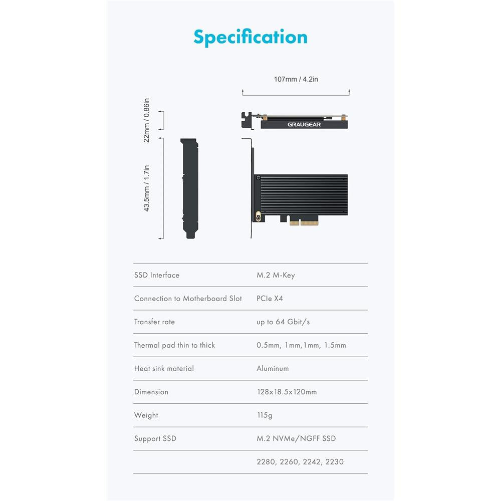 GRAUGEAR M.2 NVMe PCIe 4.0 Karte mit Kühlkörper