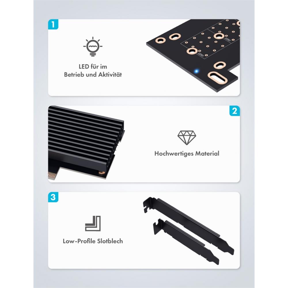 - Konvertiert M.2 NVMe SSDs auf PCIe 4.0 x4