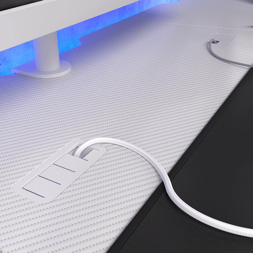 Das ist dank der minimalistischen Konstruktion aus robustem Metall. Wir haben auch einen Kunststoff-Kabelhalter beigefügt – einfach am Rahmen anbringen und „Tschüss“ zu unordentlichen Kabeln sagen.