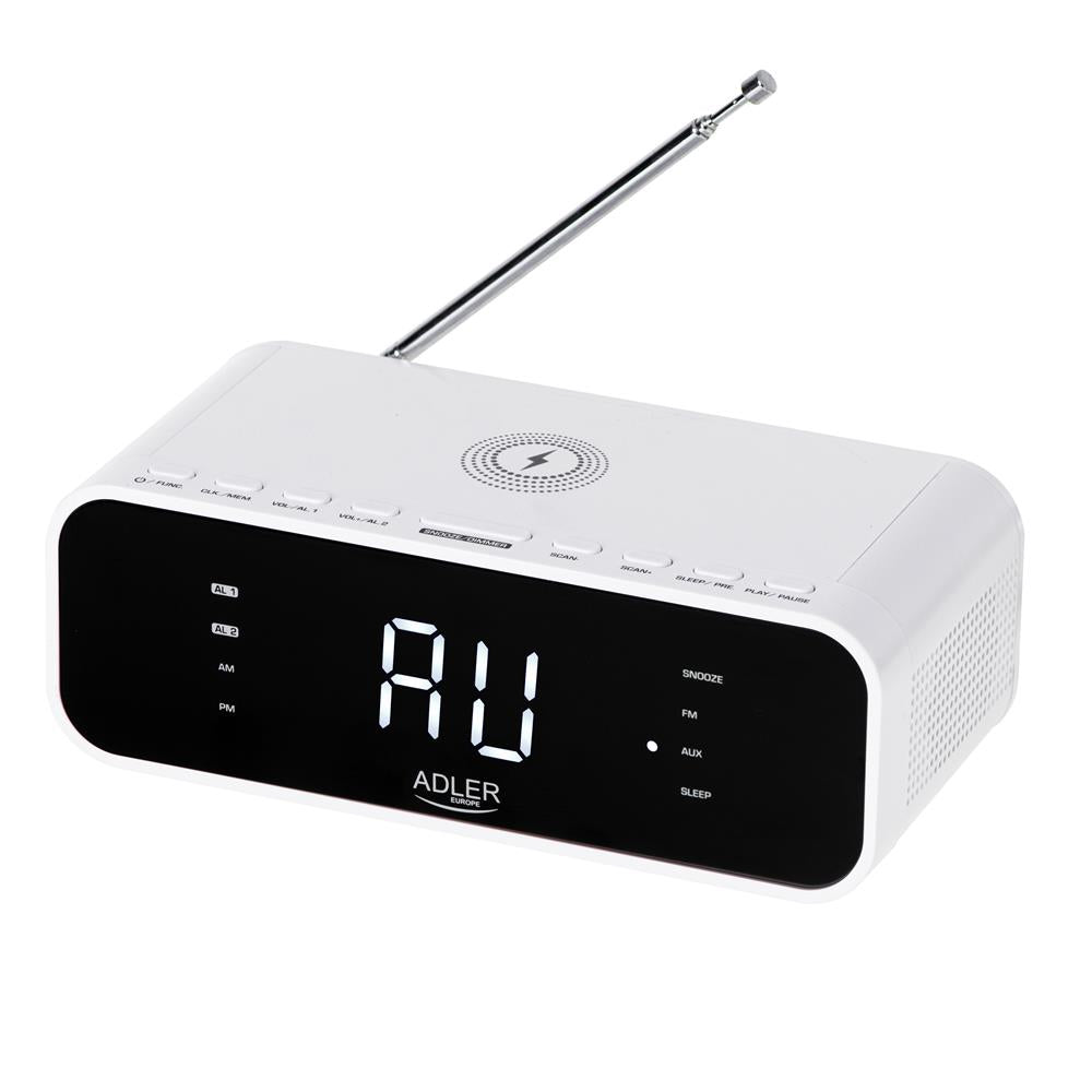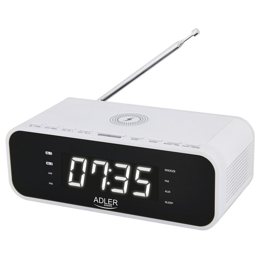 Adler AD 1192W Wecker mit kabellosem Ladegerät, digital, mit FM Radio und Bluetooth