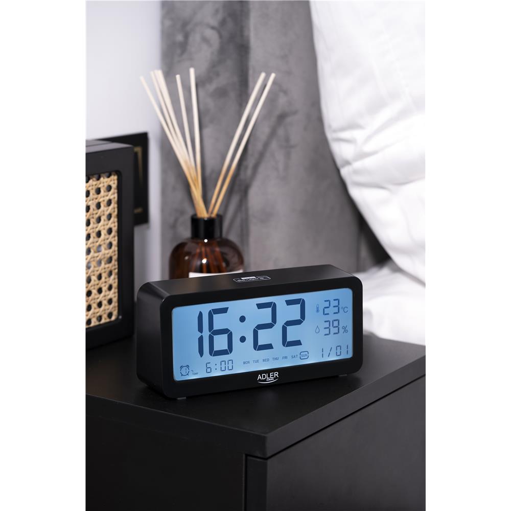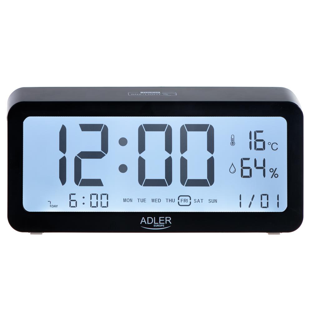 Adler AD 1195b digital Wecker batteriebetrieben Temperaturanzeige schwarz