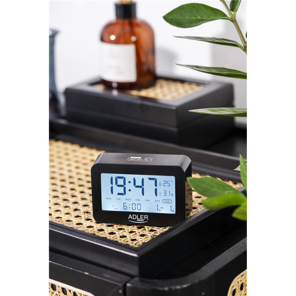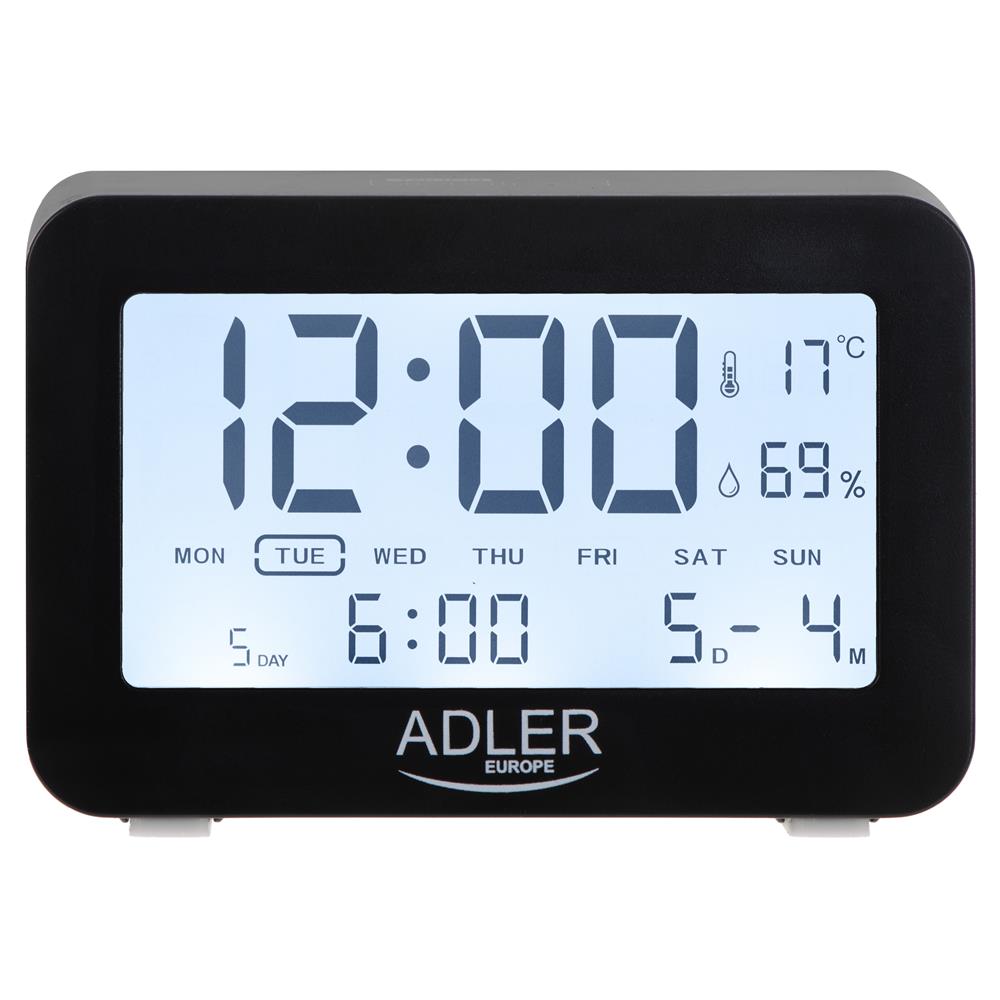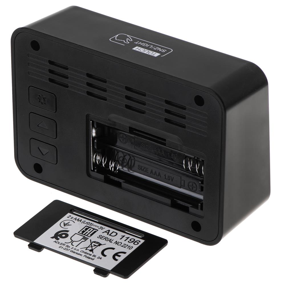 Adler AD 1196B Batteriebetriebener Wecker schwarz digital Hintergrundbeleuchtung 3 Alarme