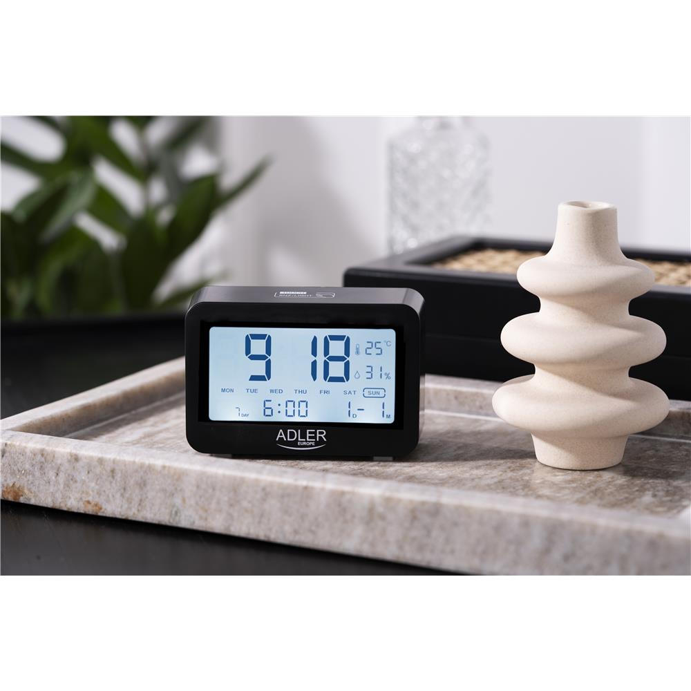 Der Wecker AD 1196 ist ein Gerät mit vielen nützlichen Funktionen, die Sie je nach Ihren Bedürfnissen auswählen können. Zunächst einmal verfügt er über 3 separate Weckzeiteinstellungen und zeigt an: Uhrzeit, Datum, Temperatur, Luftfeuchtigkeit. Ein großer Vorteil ist das gut lesbare Display mit Hintergrundbeleuchtung, auf dem Sie die Uhrzeit und die Temperatur leicht ablesen können. Der Wecker wird mit 2 AAA-Batterien betrieben. Anzeigen: Zeit, Datum, Temperatur, Luftfeuchtigkeit.