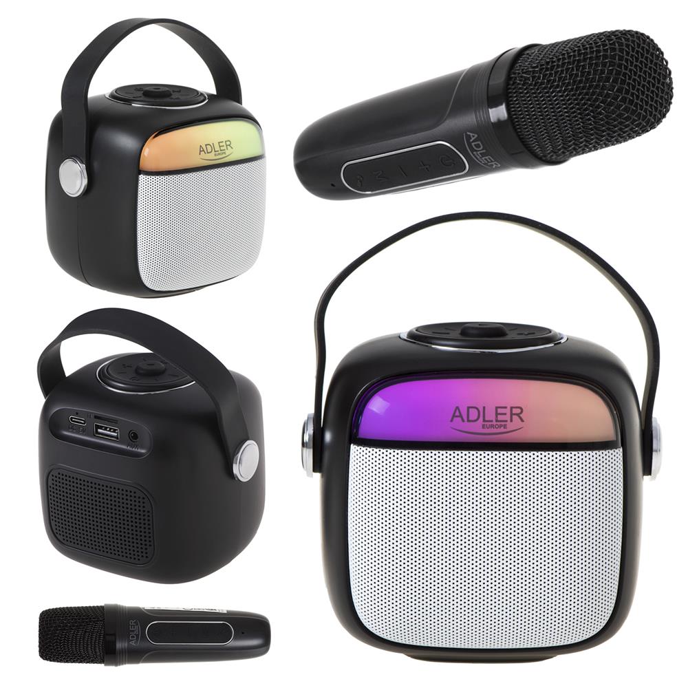 Adler AD 1199 Karaoke Lautsprecher mit Mikrofon SD USB AUX Bluetooth schwarz