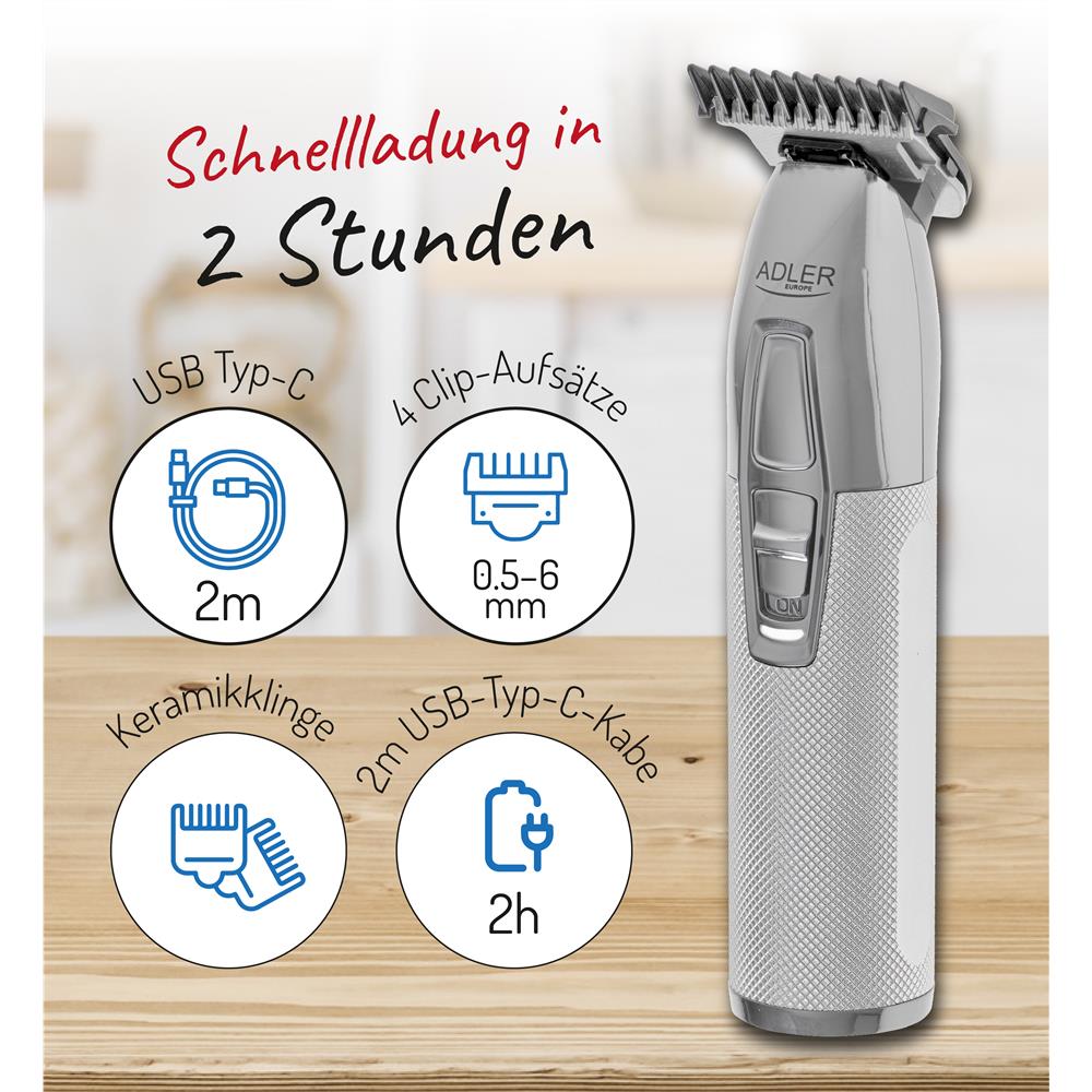 Adler AD 2836 professioneller Trimmer Silber elektrisch für Gesicht Bartschneider Schneidegerät