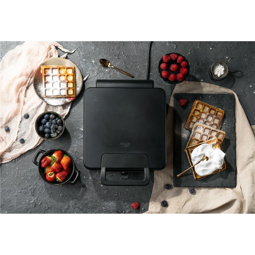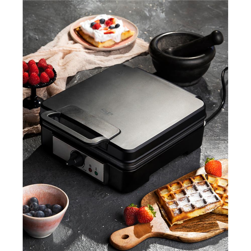 Adler AD 3049 Waffeleisen in Schwarz 1800W für 4 Waffeln mit Temperaturregelung